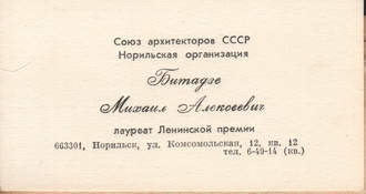 В прошлом году, совершенно случайно, мы, архивисты, познакомились с замечательной женщиной, Нателой Михайловной Битадзе. В качестве добровольца она помогала нам в описании хранящихся в архиве фотографий Норильского клуба самодеятельной песни, и к нашей большой профессиональной радости, согласилась передать в архив документы своего отца – Михаила Алексеевича Битадзе, инженера-строителя, проектировщика, члена Союза архитекторов СССР, одного из авторов метода свайного фундирования на вечномерзлых грунтах, лауреата Ленинской премии 1966 года, чье личное дело уже давно находится на постоянном хранении в Норильском городском архиве.