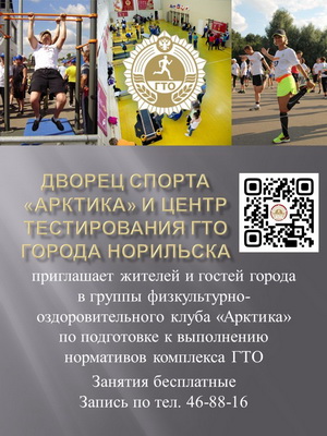 Если не получилась выполнить с первого раза все нормативы на знак отличия, не отчаивайтесь! Во Дворце спорта «Арктика» создан клуб по месту жительства граждан, основная деятельность которого направлена на реализацию комплекса ГТО. Целью создания Клуба является подготовка населения к выполнению нормативов испытаний (тестов) комплекса ГТО, пропаганда здорового образа жизни и организация активного отдыха населения.