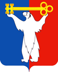 Герб города разработан в 1972 году художником Виктором Лещуком. Белый медведь с поднятым над головой ключом символизирует мощь промышленного освоения Таймыра, раскрывшего перед людьми свои природные кладовые. "Щит рассечен на лазурь (синий, голубой) и червлень (красный), поверх всего серебряный полярный медведь с черными глазами и носом, прямо стоящий и обернувшийся вправо, держащий передними лапами над головой золотой ключ в пояс, двухсторонней бородкой вправо"
