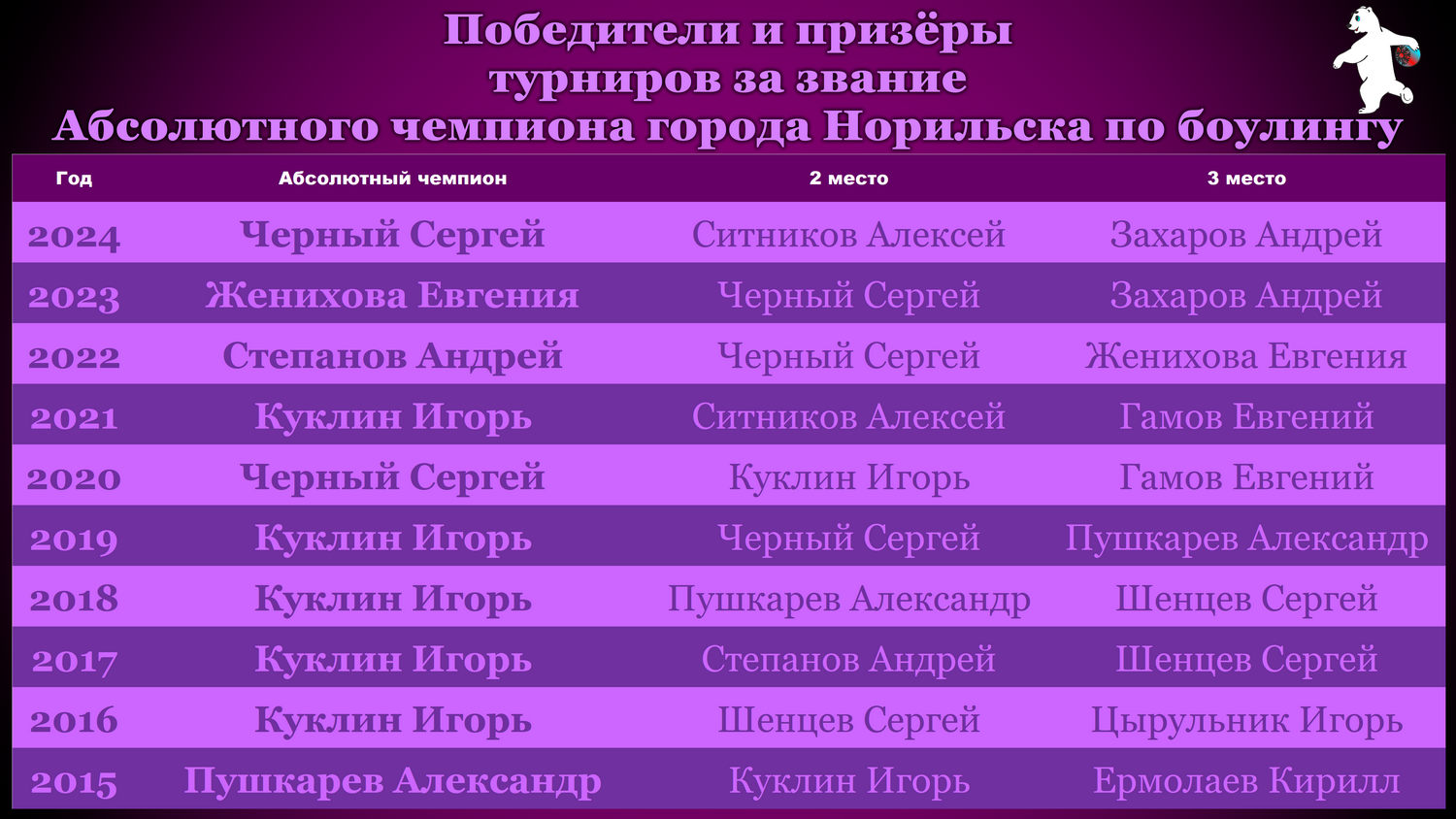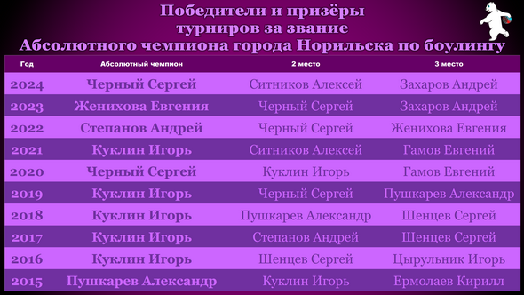 ЧЕМПИОНАТ ГОРОДА НОРИЛЬСКА ПО БОУЛИНГУ 2025 года |